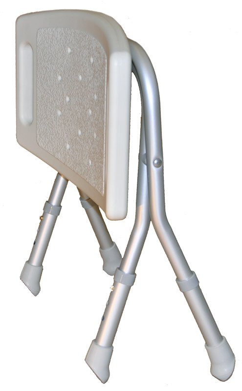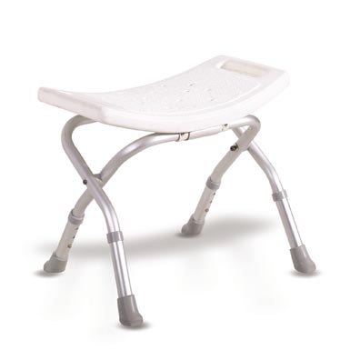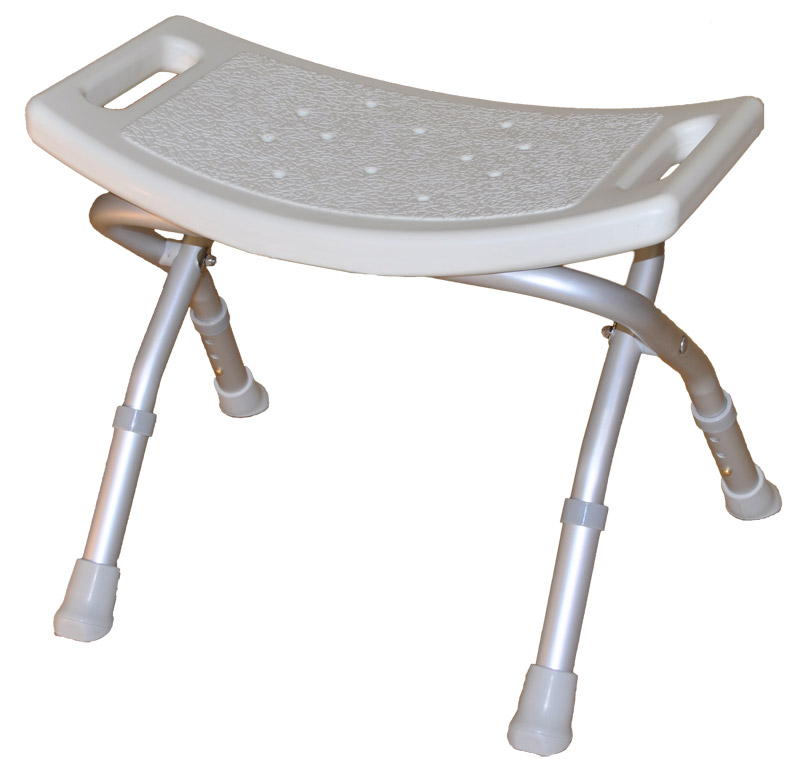 Alumiinista valmistettu kasaantaitettava, korkeudelta säädettävä, nelijalkainen suihkutuoli. Istuimessa reikiä ja reunoissa siirtämistä helpottavat käsikahvat. Jalkojen leveys: 53 cm Jalkojen syvyys: 43 cm Istuimen korkeus: 37-41 cm Istuimen koko: 31 X 51 cm Paino: Korkeuden säätö reikiä 3 kpl | |||||||||||||||||||||||||||||||||||||||||||||||||||||||||||