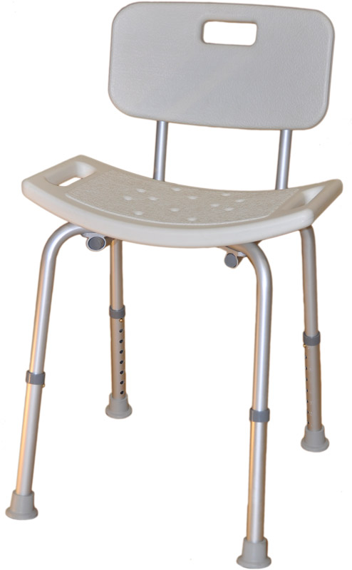 Alumiininen, selkänojallinen suihkutuoli. Selkänoja käsikahvallinen ja helposti irrotettava. Jaloissa imukupit. Istuimessa reikiä. Reunoissa ja selkänojassa liikkuttelua helpottavat käsikahvat. Jalkojen leveys: 46 cm Jalkojen syvyys: 45 cm Istuimen korkeus: 35-53 cm Istuimen koko: 31 X 51 cm Selkänojan koko: 23 X 41 cm Selkänojan korkeus: 67-85 cm Paino: 2,5 kg Korkeudensäätö paikkoja 8 kpl, selkeästi numeroin merkitty. | |||||||||||||||||||||||||||||||||||||||||||||||||||||||||||